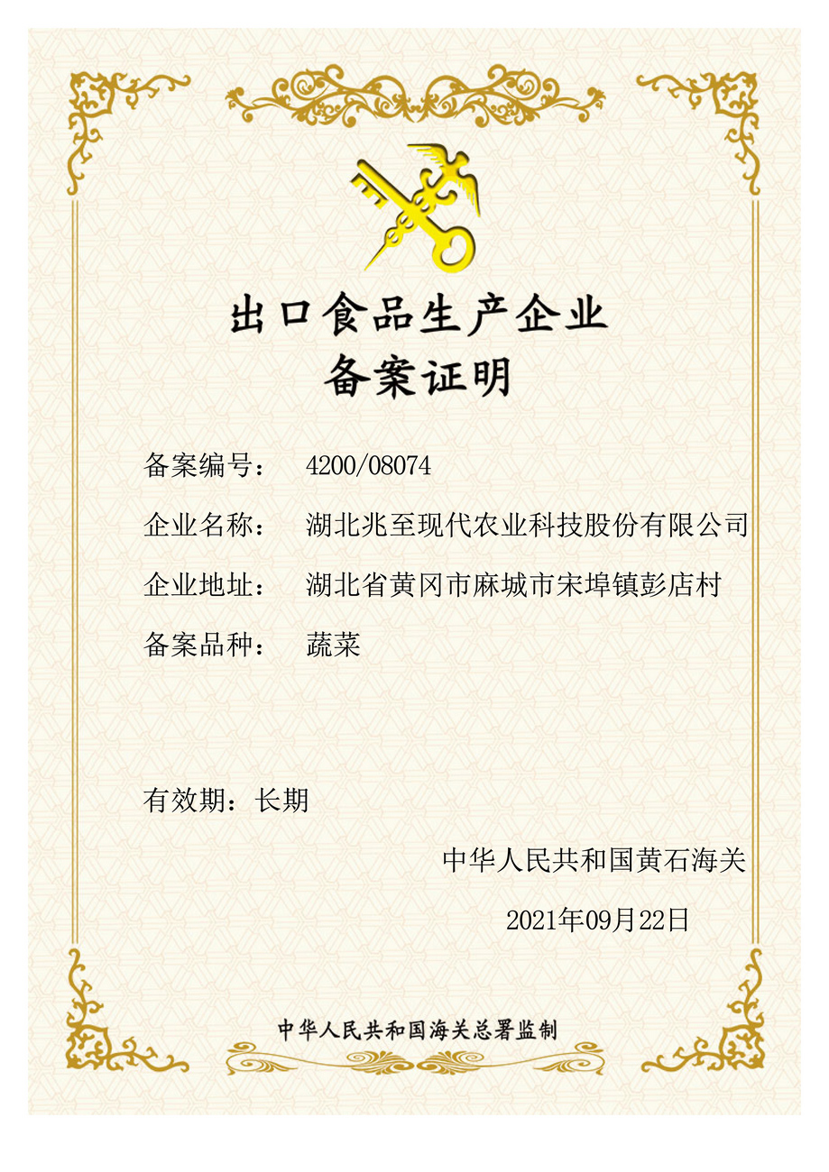 出口食品生產企業備案證明